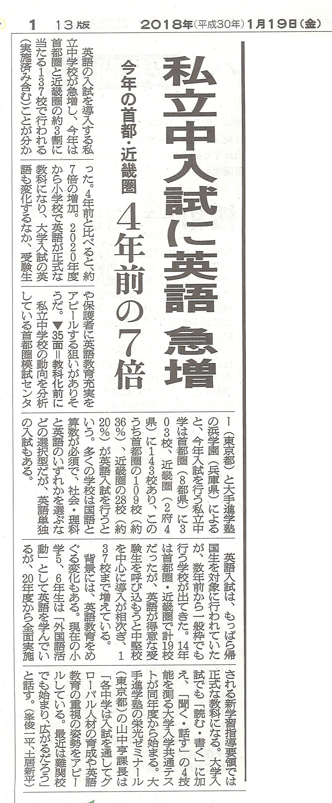 今、私立の中学校も生き残りをかけて、グローバル人材を育成、英語教育を重視していることをアピールしようと懸命です。その流れがとても速くなっていることをこのニュースは物語っています。