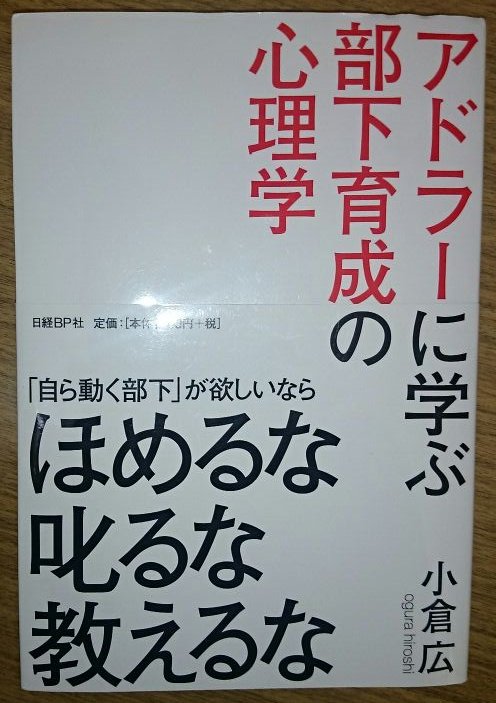 「ほめない、しからない、おしえない教育」がアドラー神学の神髄です。この心理学は、ビジネスの人材育成でも応用できると『アドラーに学ぶ部下育成の心理学』(日経BP社出版、小倉広著)という著書を読んでみました。