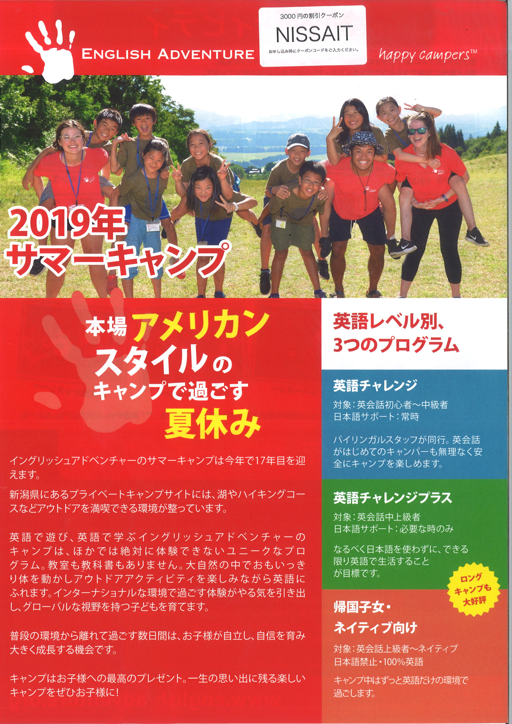 イングリッシュアドベンチャーがサマーキャンプの募集を開始ました。