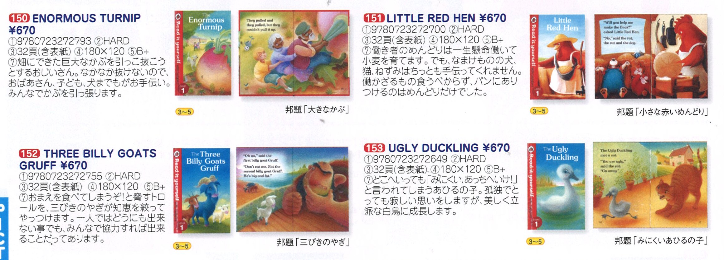 どれも定価670円です。購入は、Kids Mart からネット注文もできます。以前は、オーディオCD付きの物もあったのですが、現在は本のみの販売になっています。
