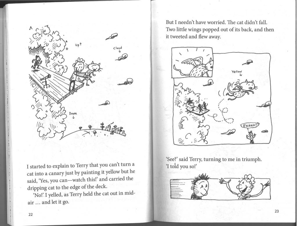 英語の表現は、教科書の英語と違って、口語体で、実際に英語圏の子供たちが使っていそうな表現が飛び交っています。漫画チックなイラストがとても楽しく、物語に夢中になってしまうのも頷けます。