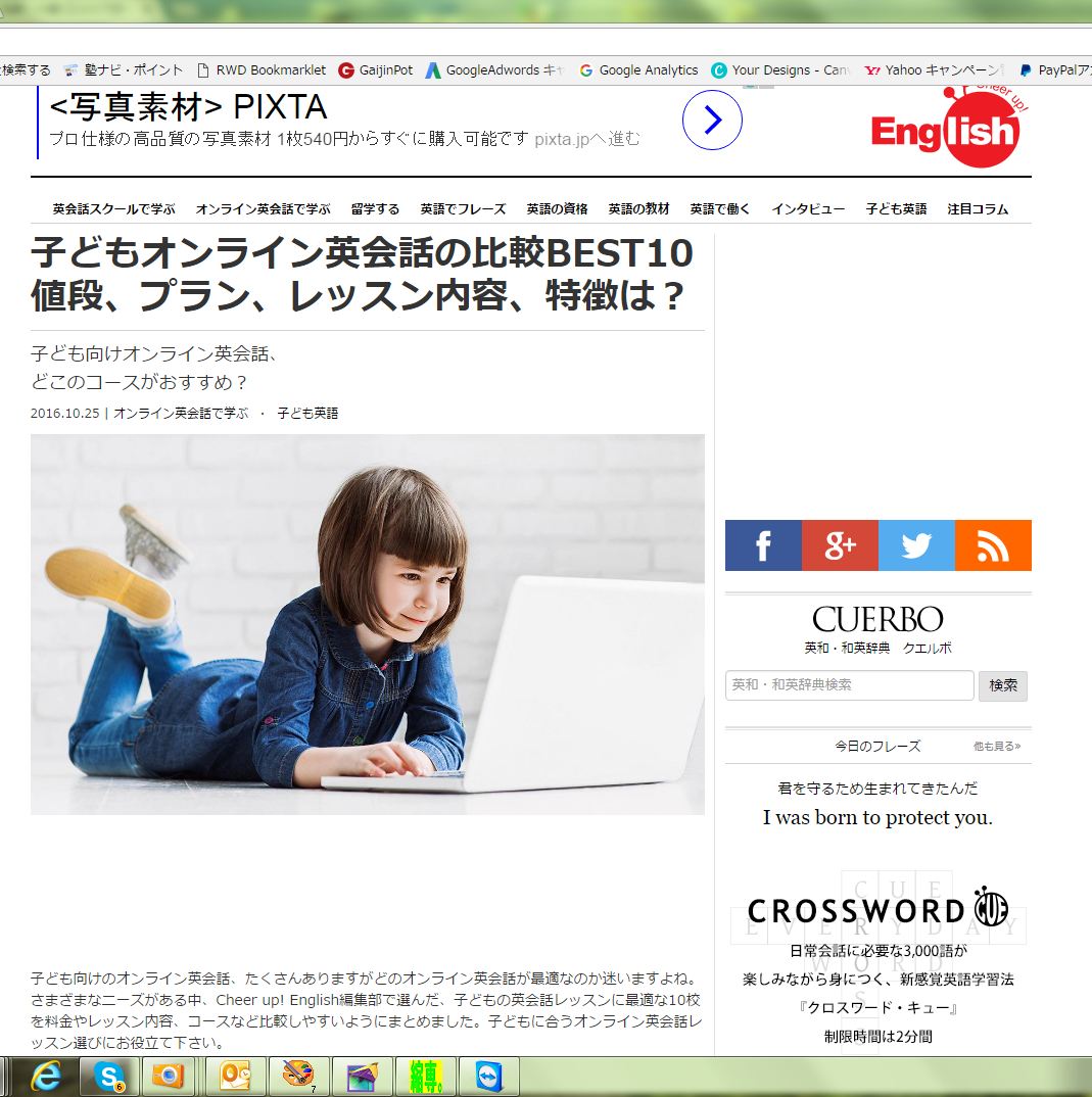オンラインマガジンでは定評のある『Cheer up! English』のサイトで、子供オンライン英会話BEST 10 の発表がありました。