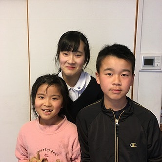 Rinaちゃん(小3)、Kazumaくん(小6)、Kanaちゃん(中2)の3人の兄弟姉妹