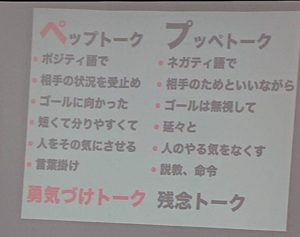 現在、このペップトークは、スポーツ界だけでなく、職場や家庭での子育てにも普及されているそうです。