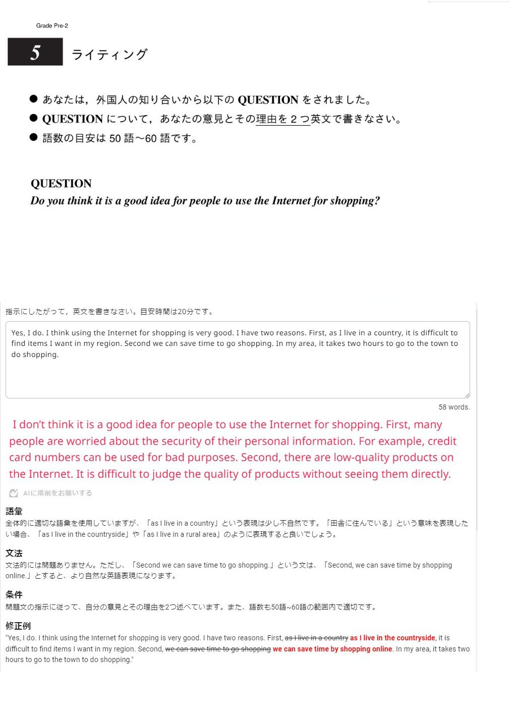 英検対策AIアプリ(GTP搭載)aim@ 英作文添削機能に感動!!